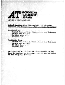 UN Refugees Handbook For Emergency Field Operations